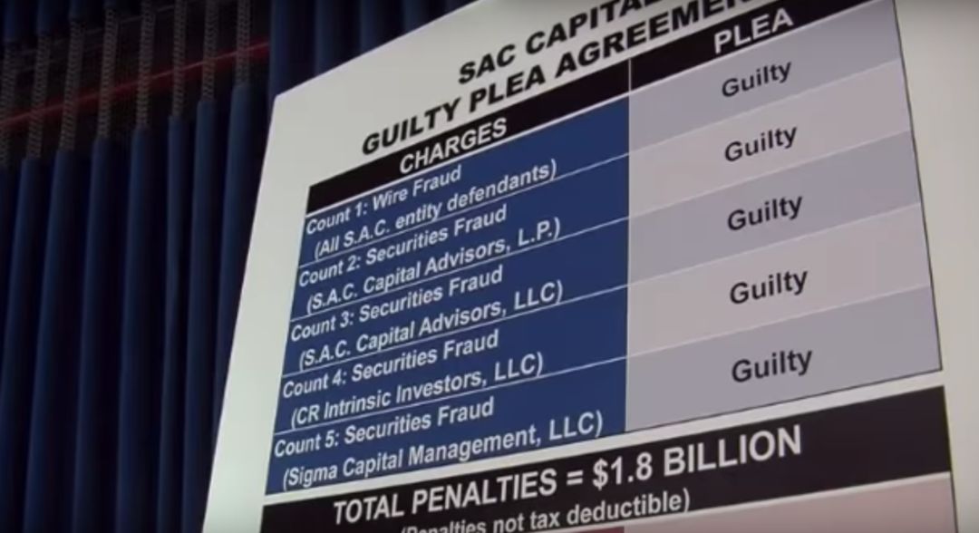 科恩的SAC最终宣布服罪,承认从事内幕交易活动,并愿意支付18亿美元罚款。SAC成为一个世纪以来第一个承认从事犯罪活动的华尔街大型公司。